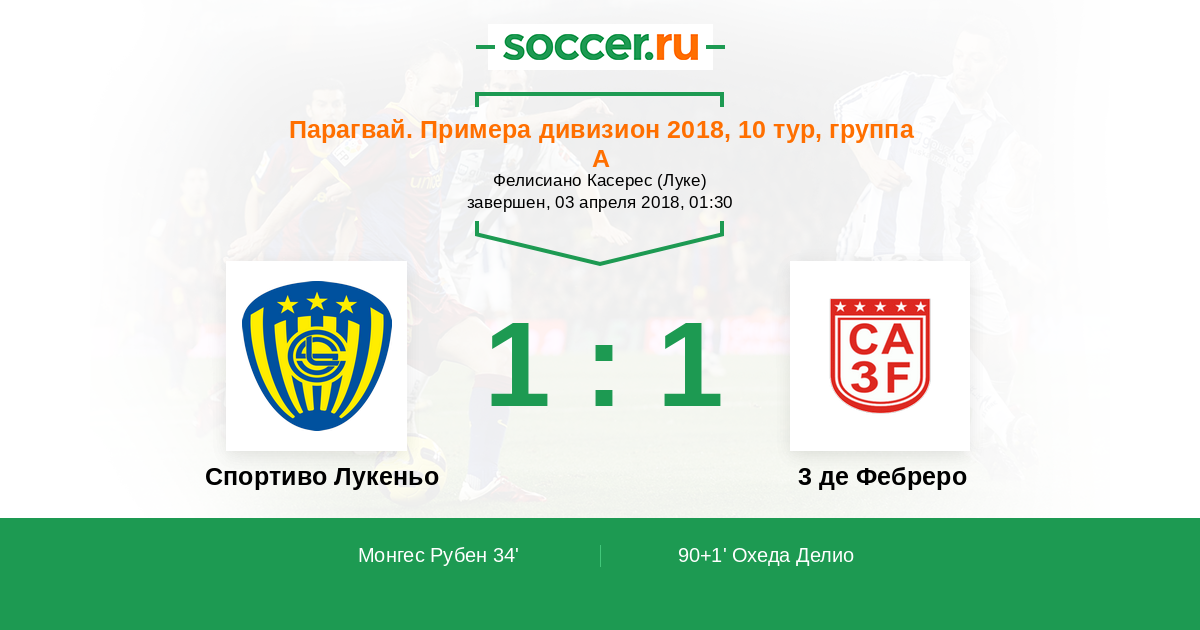 Спортиво Лукеньо - 3 де Фебреро: обзор матча 3 апреля 2018