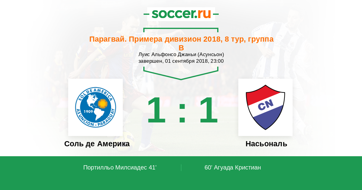 Соль де Америка - Насьональ: обзор матча 1 сентября 2018