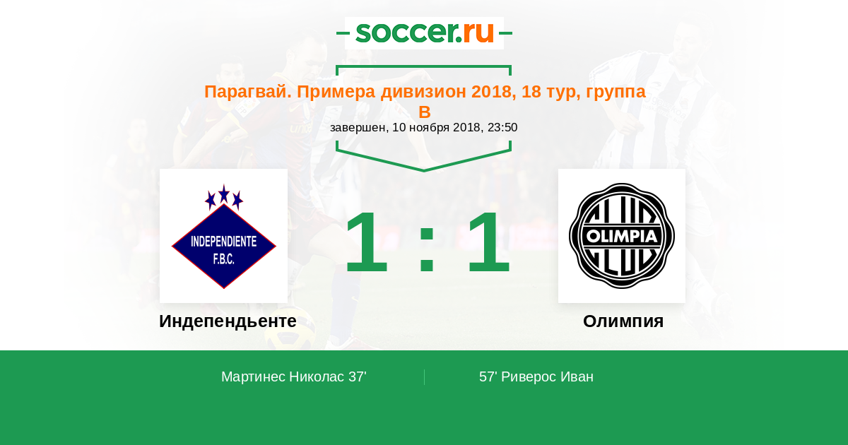 Индепендьенте - Олимпия: обзор матча 10 ноября 2018