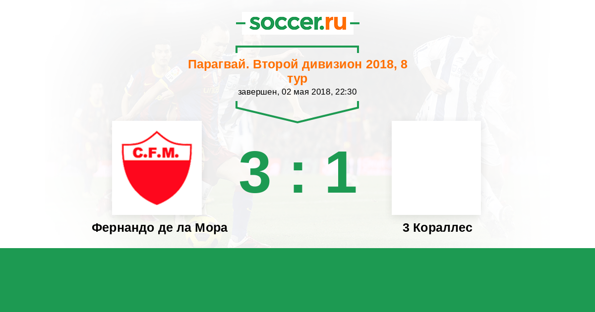 Фернандо де ла Мора - 3 Кораллес: обзор матча 2 мая 2018