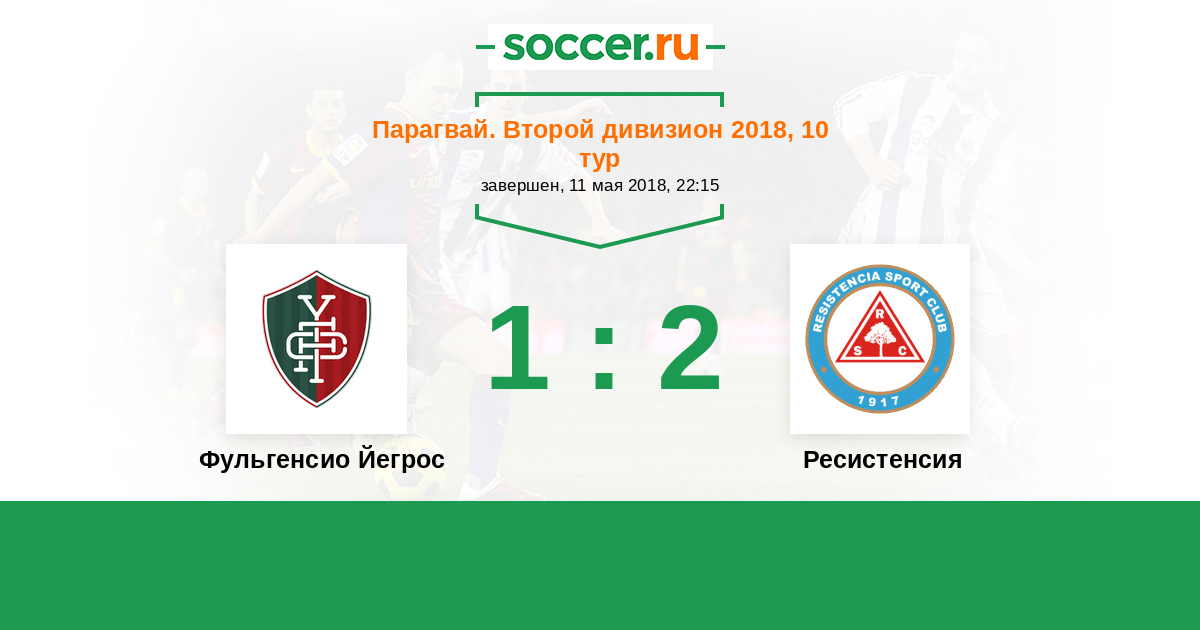 Фульгенсио Йегрос - Ресистенсия: обзор матча 11 мая 2018