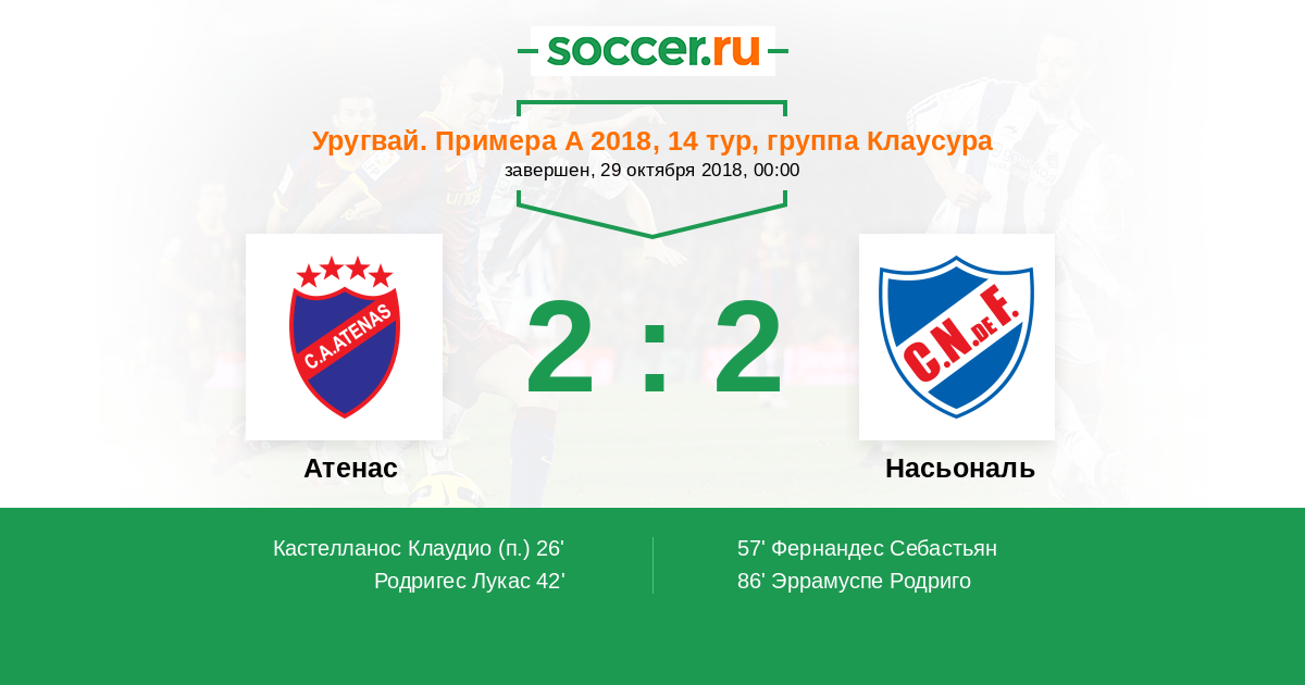 Атенас - Насьональ: обзор матча 29 октября 2018