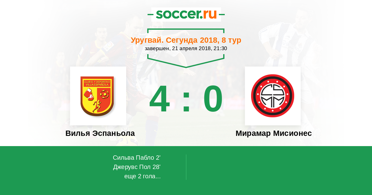 Вилья Эспаньола - Мирамар Мисионес: обзор матча 21 апреля 2018