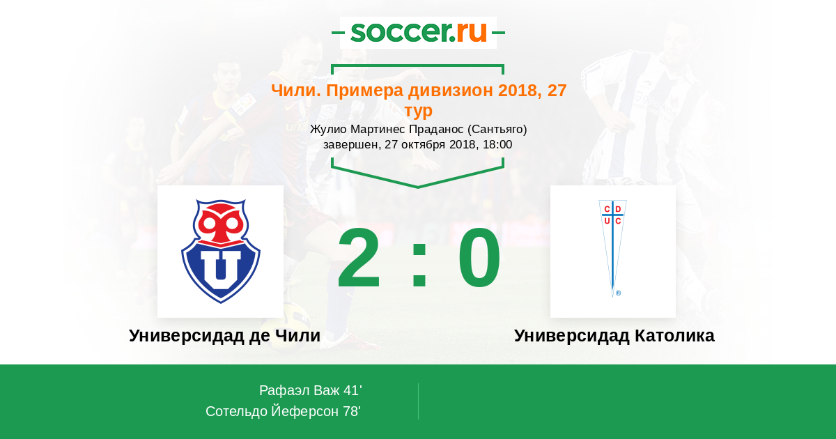 Универсидад де Чили - Универсидад Католика: обзор матча 27 октября 2018