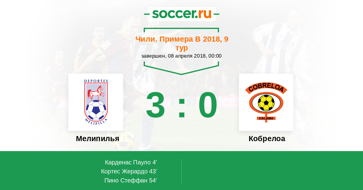 Мелипилья - Кобрелоа: обзор матча 8 апреля 2018