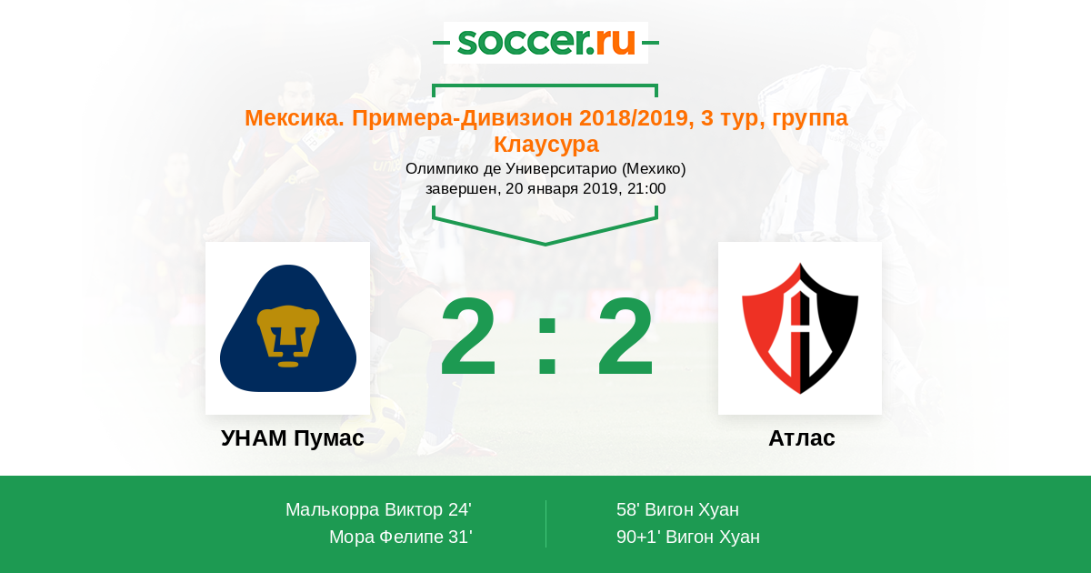 УНАМ Пумас - Атлас: обзор матча 20 января 2019