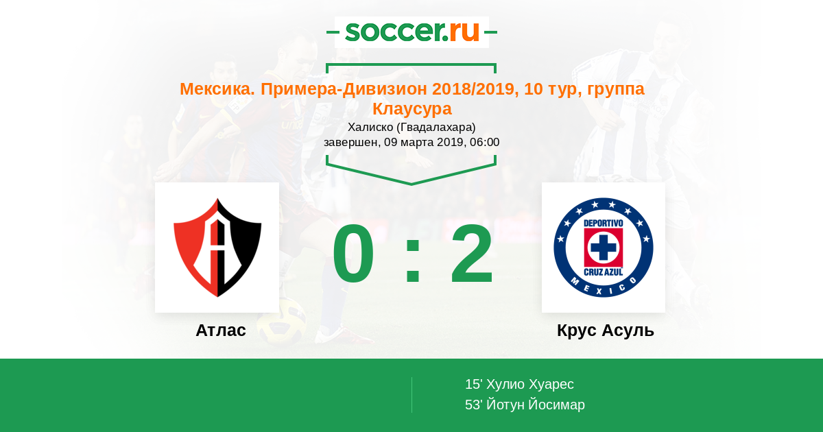 Атлас - Крус Асуль: обзор матча 9 марта 2019