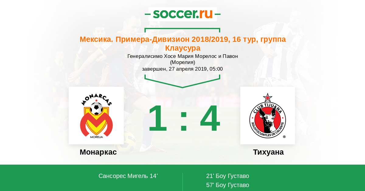 Монаркас - Тихуана: обзор матча 27 апреля 2019