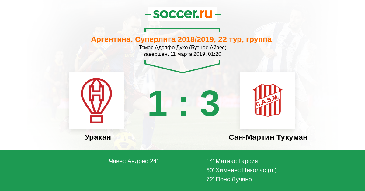 Уракан - Сан-Мартин Тукуман: обзор матча 11 марта 2019