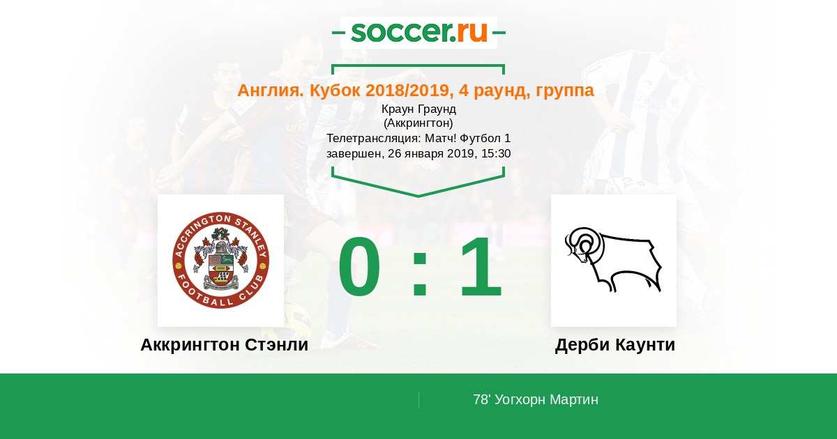Аккрингтон Стэнли - Дерби Каунти: обзор матча 26 января 2019