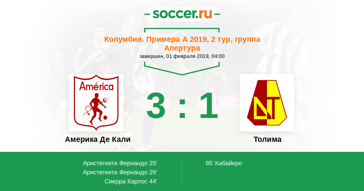 Америка Де Кали - Толима: обзор матча 1 февраля 2019