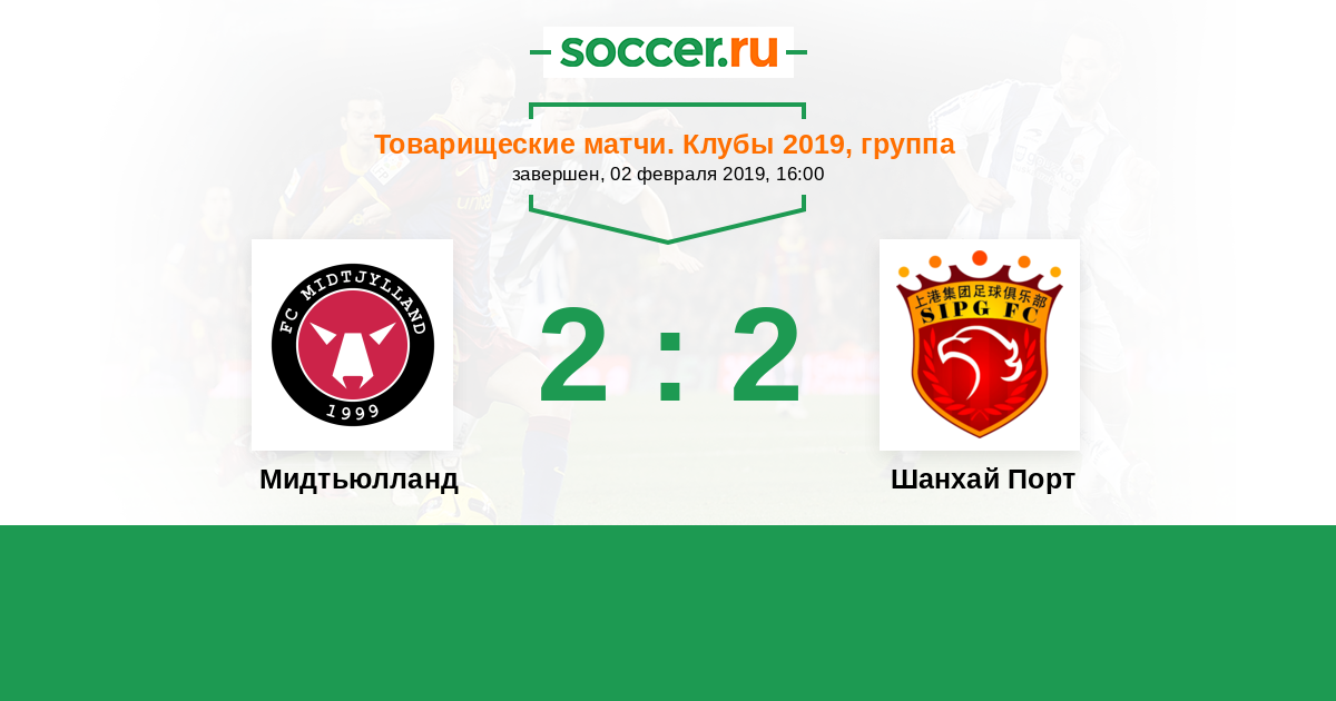 Мидтьюлланд - Шанхай Порт: обзор матча 2 февраля 2019