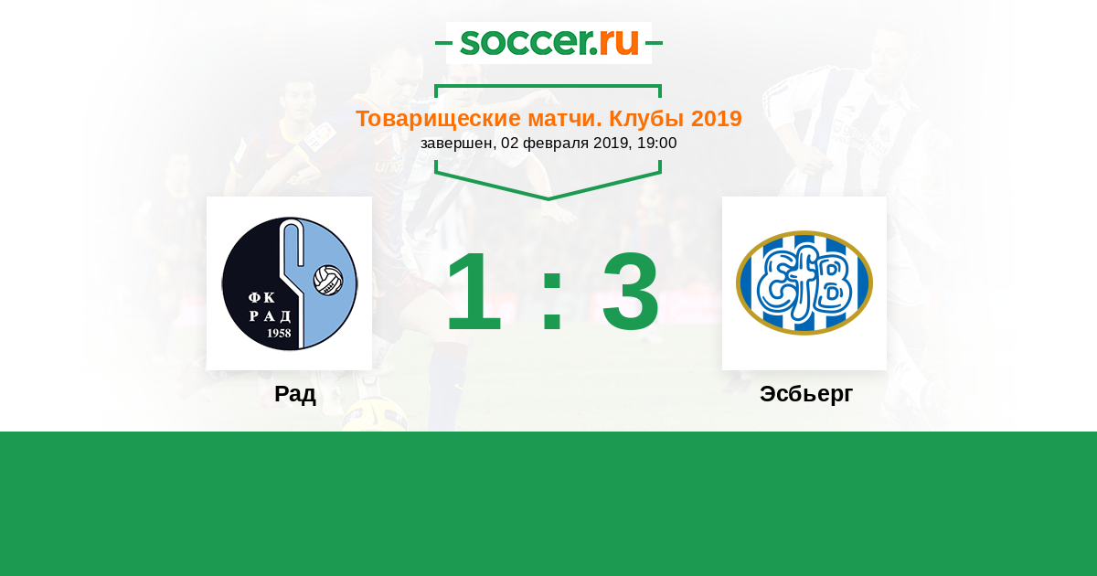 Рад - Эсбьерг: обзор матча 2 февраля 2019