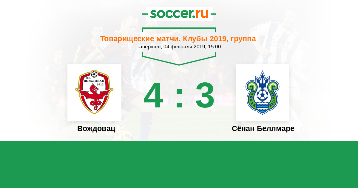 Вождовац - Сёнан Беллмаре: обзор матча 4 февраля 2019