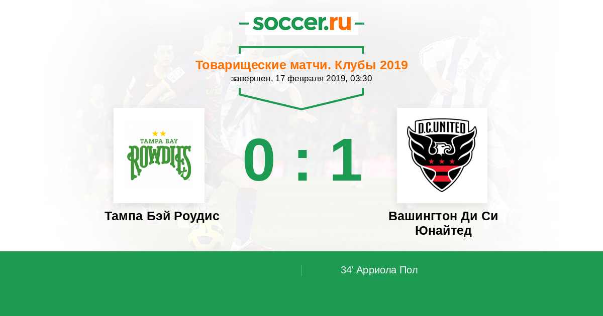 Тампа Бэй Роудис - Вашингтон Ди Си Юнайтед: обзор матча 17 февраля 2019