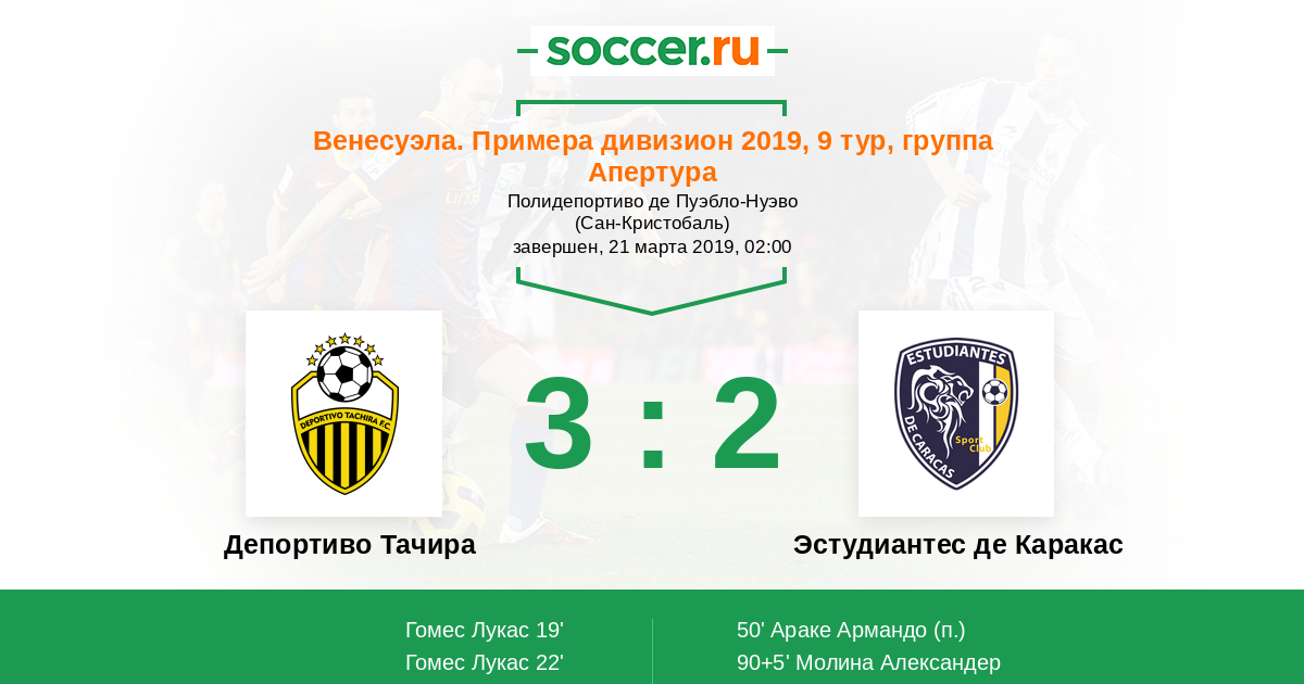Депортиво Тачира - Эстудиантес де Каракас: обзор матча 21 марта 2019