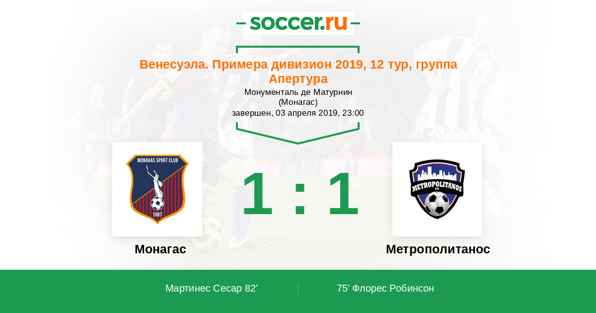 Монагас - Метрополитанос: обзор матча 3 апреля 2019