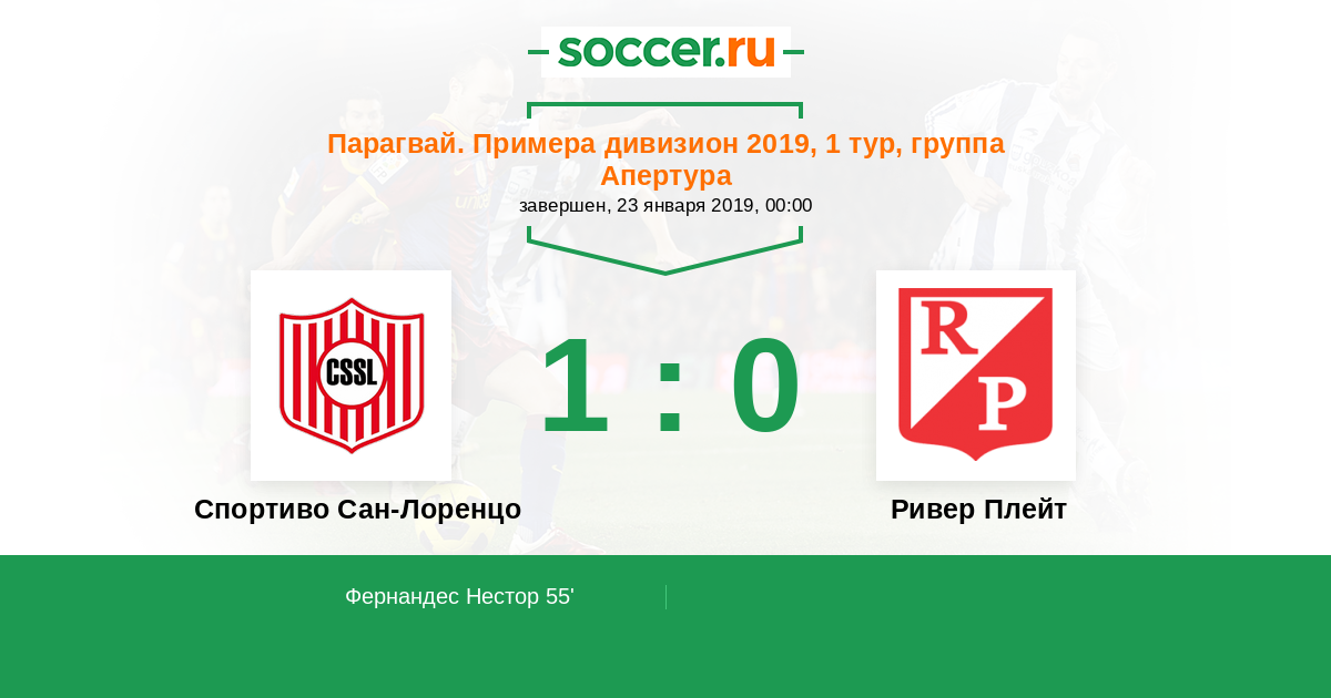 Спортиво Сан-Лоренцо - Ривер Плейт: обзор матча 23 января 2019
