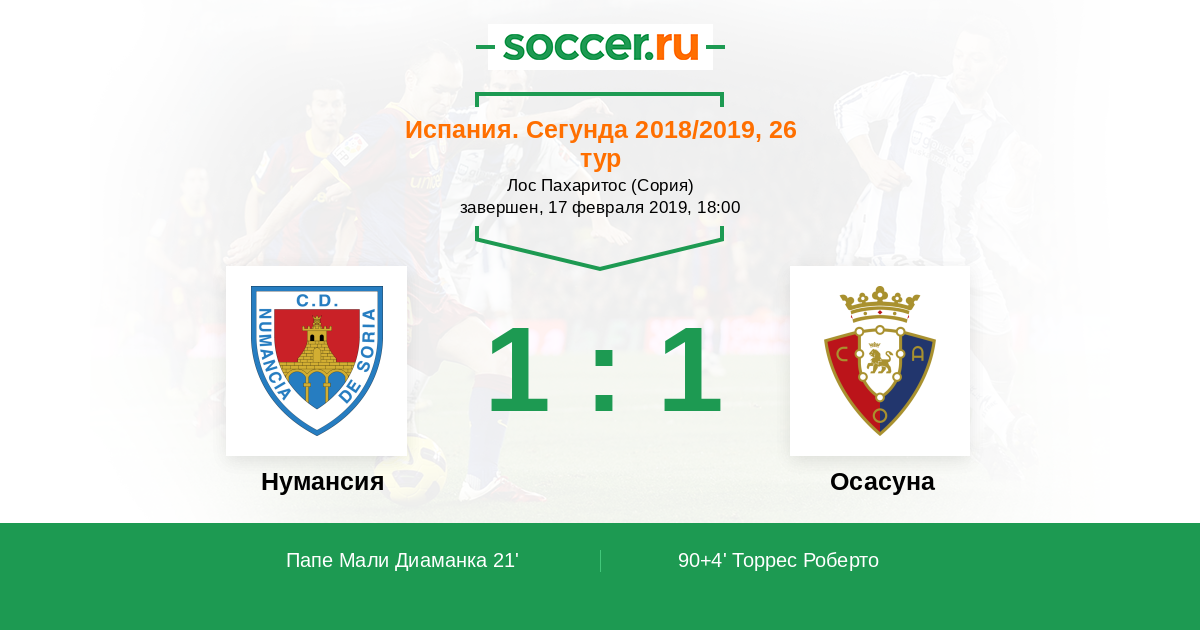 Нумансия - Осасуна: обзор матча 17 февраля 2019