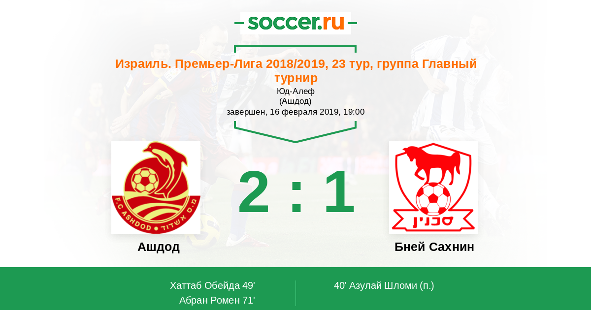 Ашдод - Бней Сахнин: обзор матча 16 февраля 2019