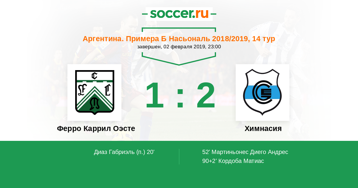 Ферро Каррил Оэсте - Химнасия: обзор матча 2 февраля 2019