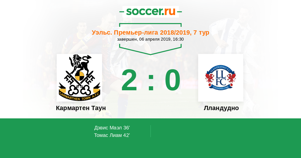 Кармартен Таун - Лландудно: обзор матча 6 апреля 2019