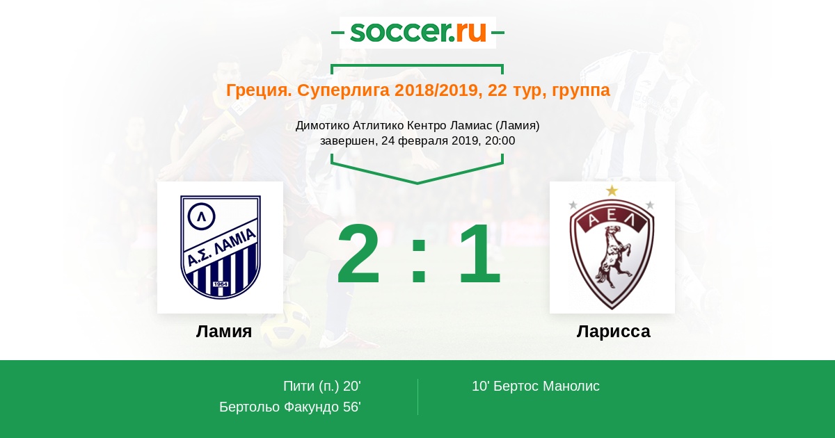 Ламия - Ларисса: обзор матча 24 февраля 2019