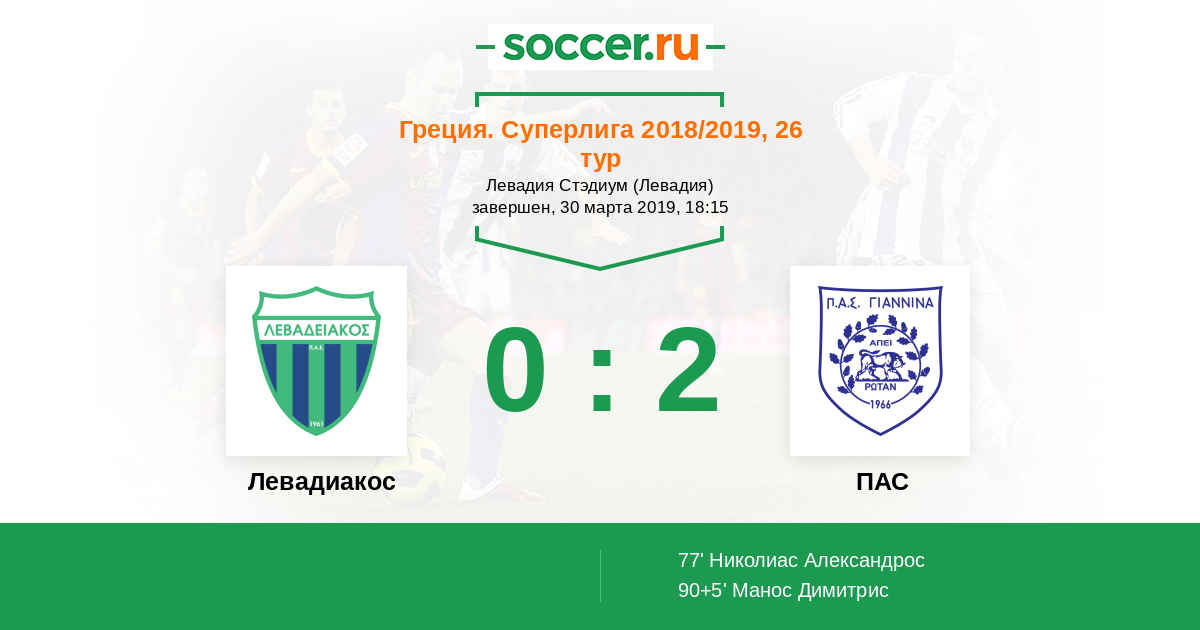 Левадиакос - ПАС: обзор матча 30 марта 2019
