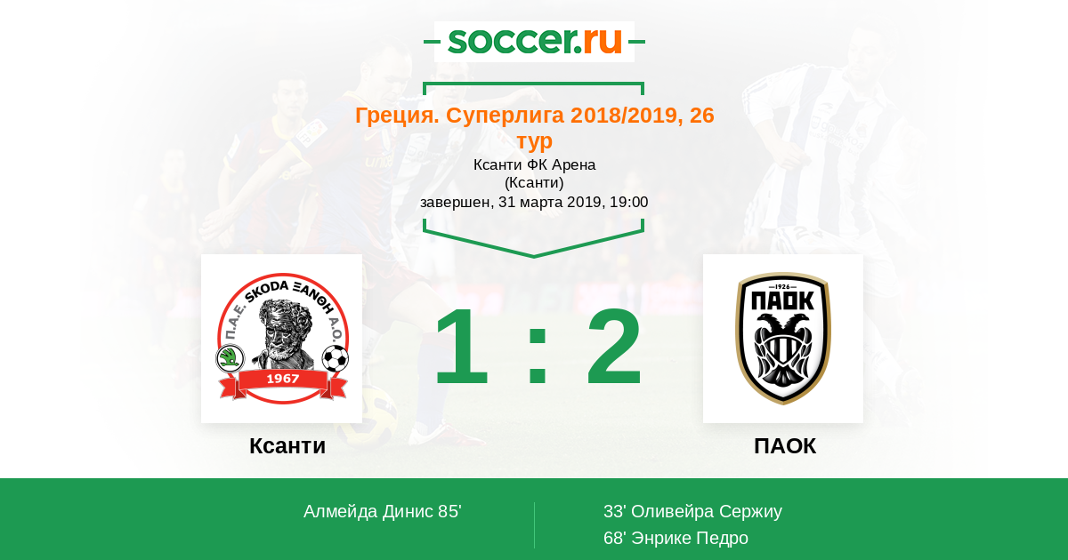 Ксанти - ПАОК: обзор матча 31 марта 2019