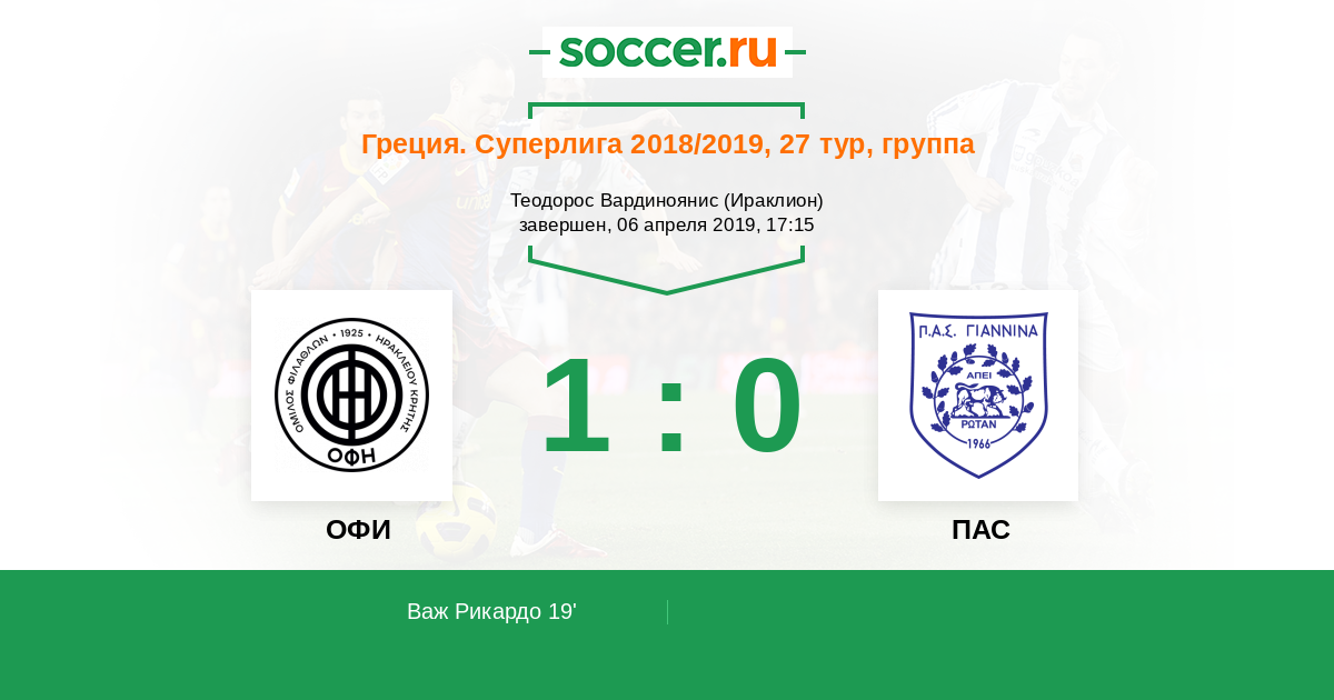 ОФИ - ПАС: обзор матча 6 апреля 2019