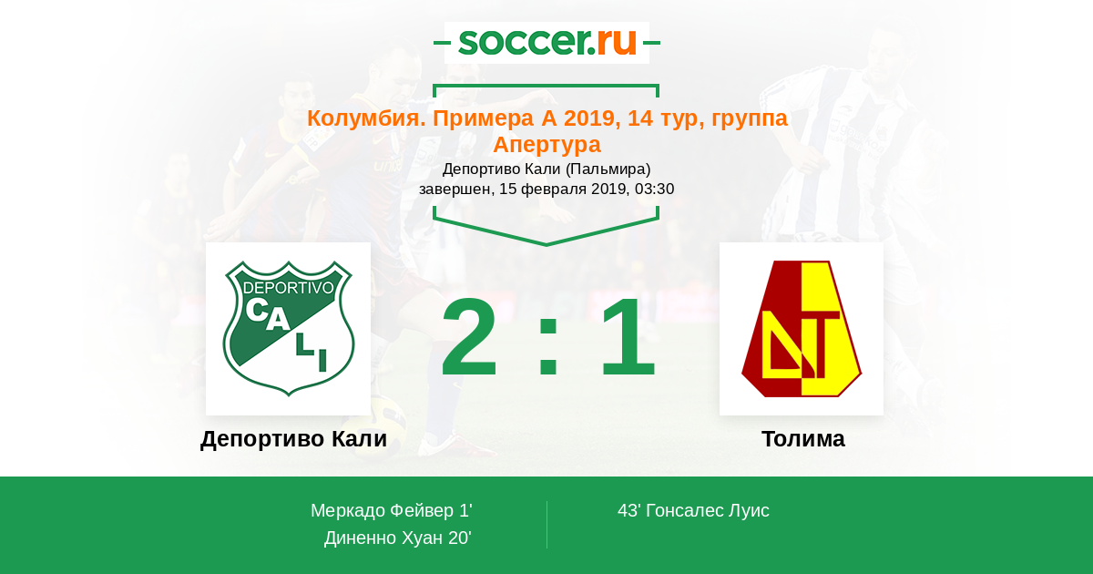 Депортиво Кали - Толима: обзор матча 15 февраля 2019