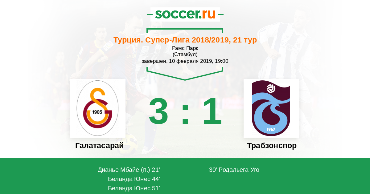 Галатасарай - Трабзонспор: обзор матча 10 февраля 2019