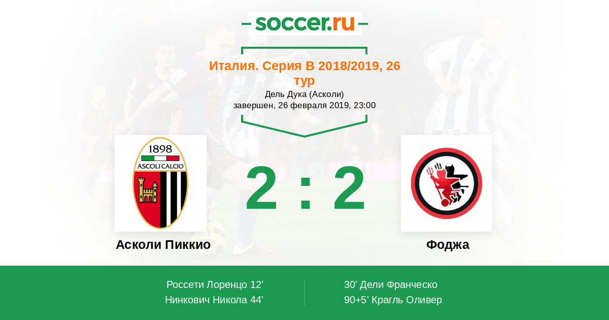 Асколи Пиккио - Фоджа: обзор матча 26 февраля 2019