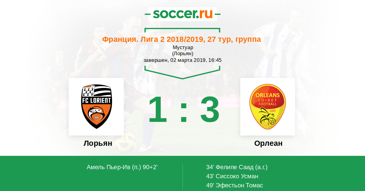Лорьян - Орлеан: обзор матча 2 марта 2019