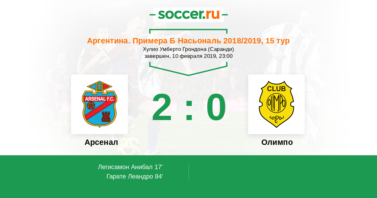 Арсенал - Олимпо: обзор матча 10 февраля 2019
