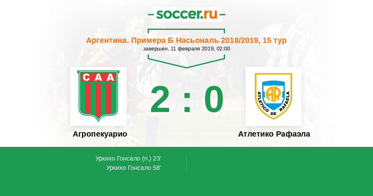 Агропекуарио - Атлетико Рафаэла: обзор матча 11 февраля 2019