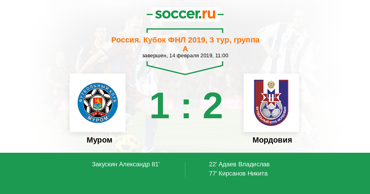 Муром - Мордовия: обзор матча 14 февраля 2019