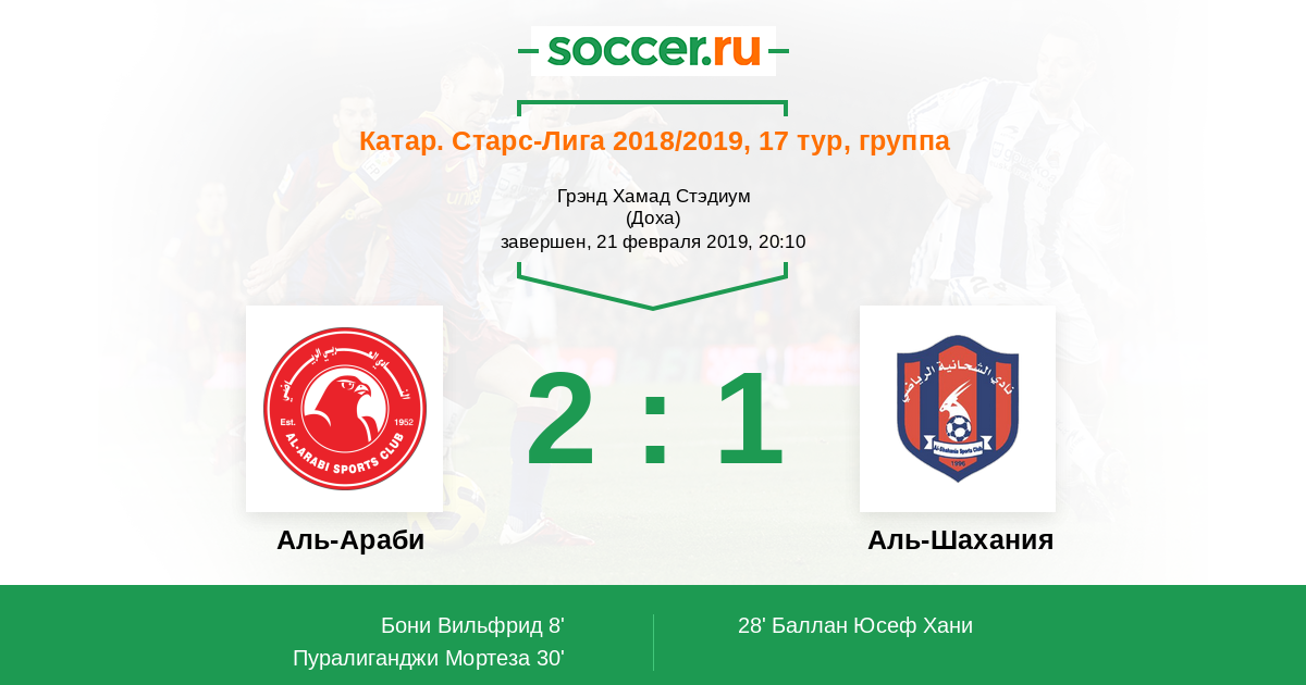 Аль-Араби - Аль-Шахания: обзор матча 21 февраля 2019