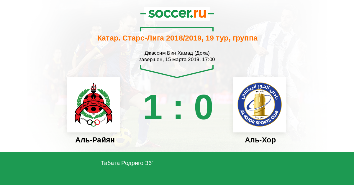 Аль-Райян - Аль-Хор: обзор матча 15 марта 2019