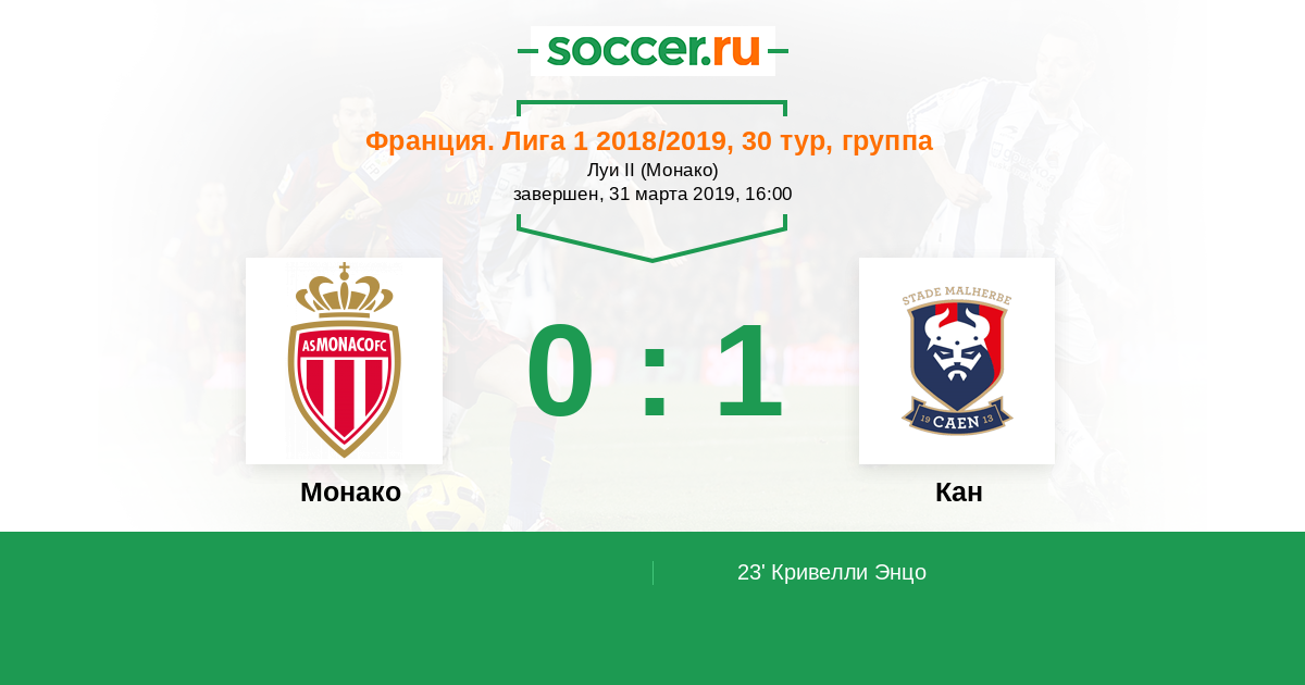 Монако - Кан: обзор матча 31 марта 2019