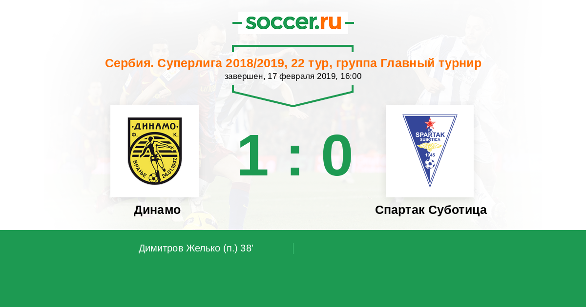 Динамо - Спартак Суботица: обзор матча 17 февраля 2019