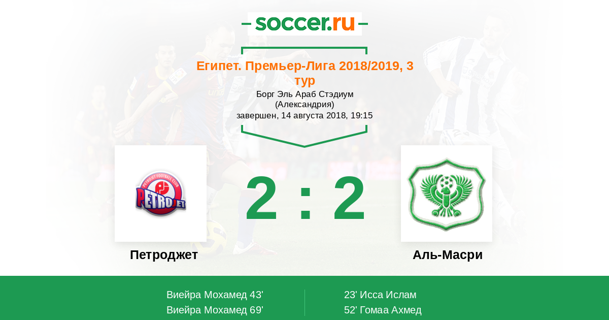 Петроджет - Аль-Масри: обзор матча 14 августа 2018