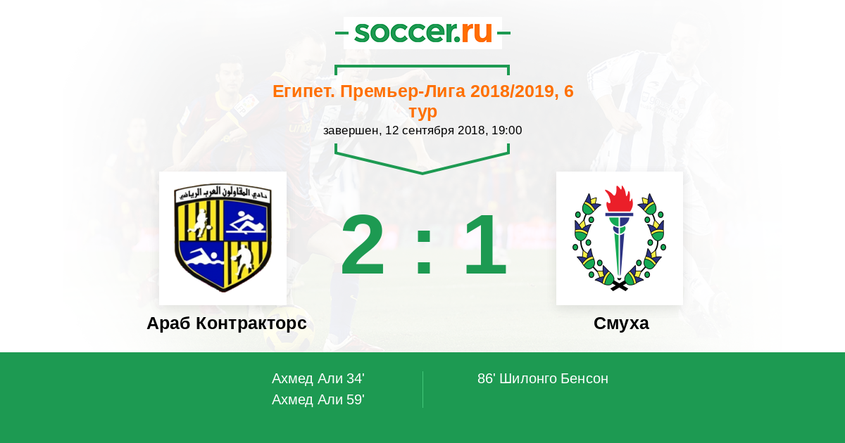 Араб Контракторс - Смуха: обзор матча 12 сентября 2018