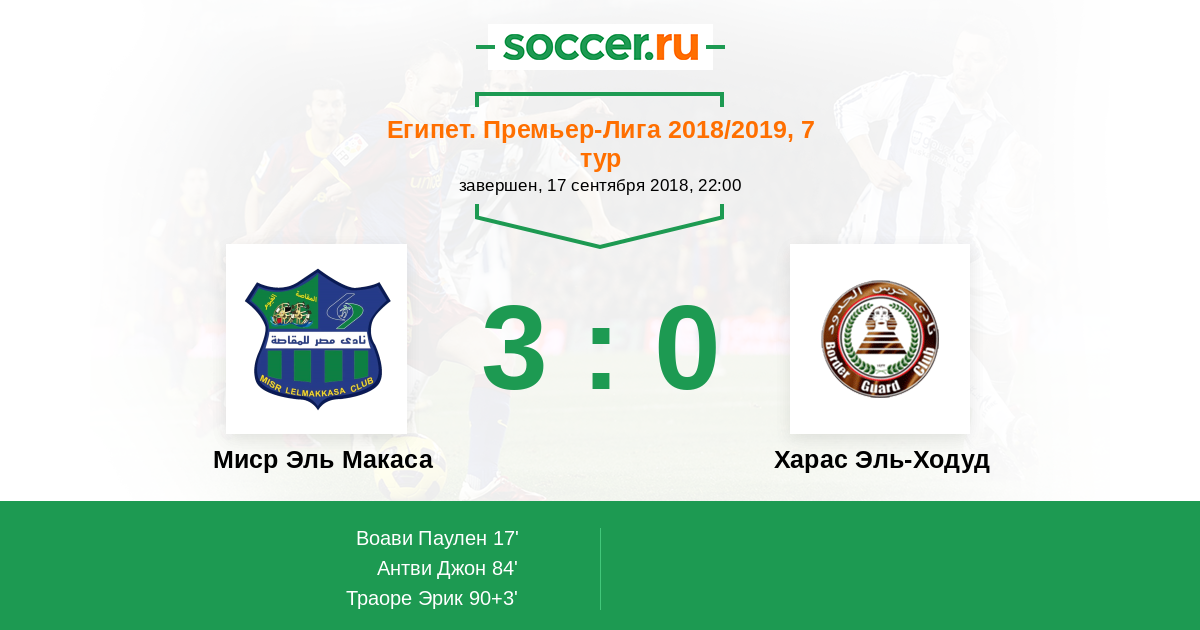 Миср Эль Макаса - Харас Эль-Ходуд: обзор матча 17 сентября 2018