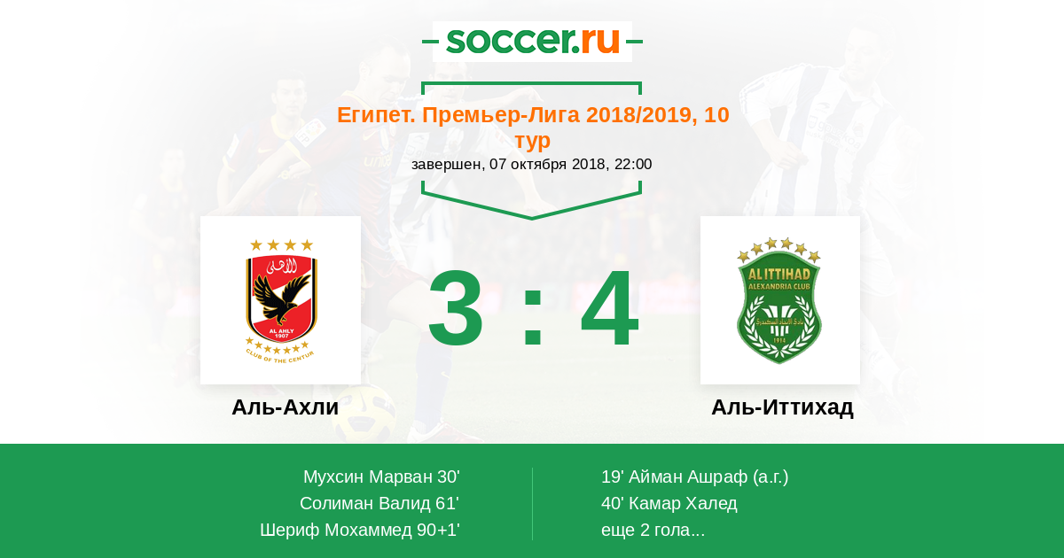 Аль-Ахли - Аль-Иттихад: обзор матча 7 октября 2018