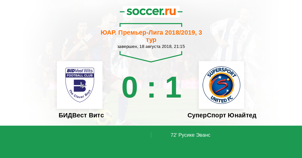 БИДВест Витс - СуперСпорт Юнайтед: обзор матча 18 августа 2018