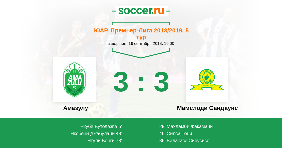 Амазулу - Мамелоди Сандаунс: обзор матча 16 сентября 2018