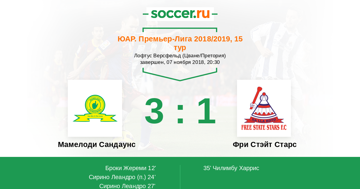 Мамелоди Сандаунс - Фри Стэйт Старс: обзор матча 7 ноября 2018
