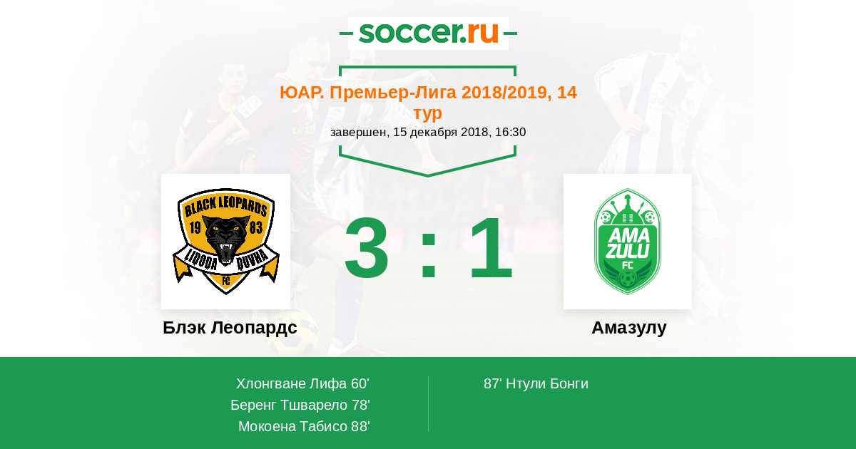Блэк Леопардс - Амазулу: обзор матча 15 декабря 2018
