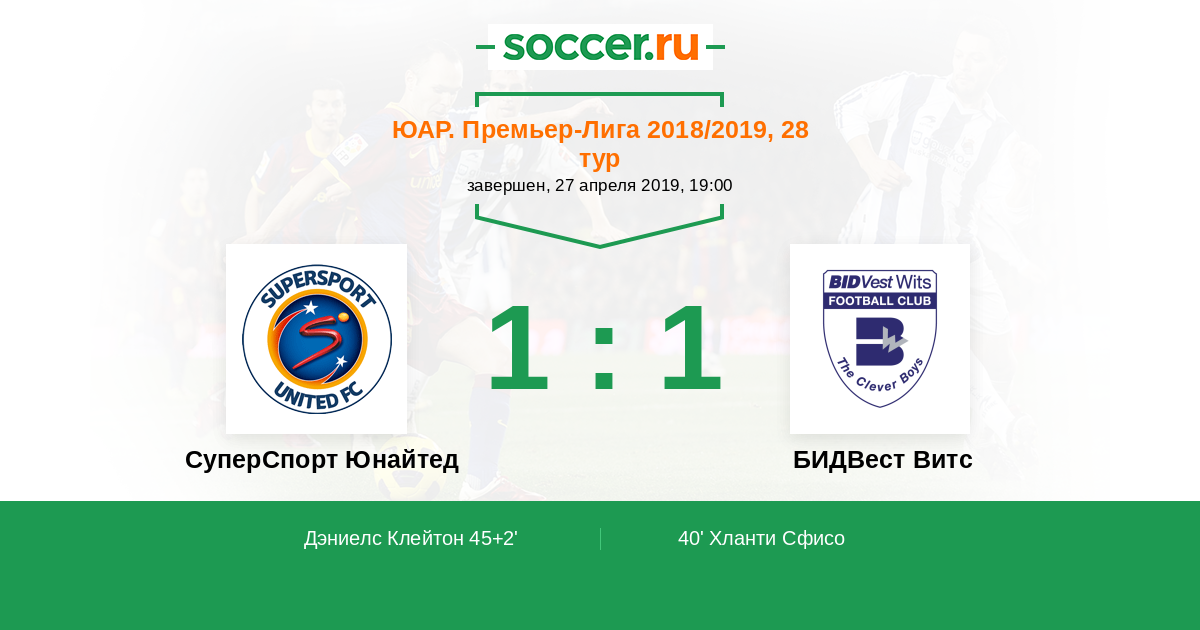 СуперСпорт Юнайтед - БИДВест Витс: обзор матча 27 апреля 2019